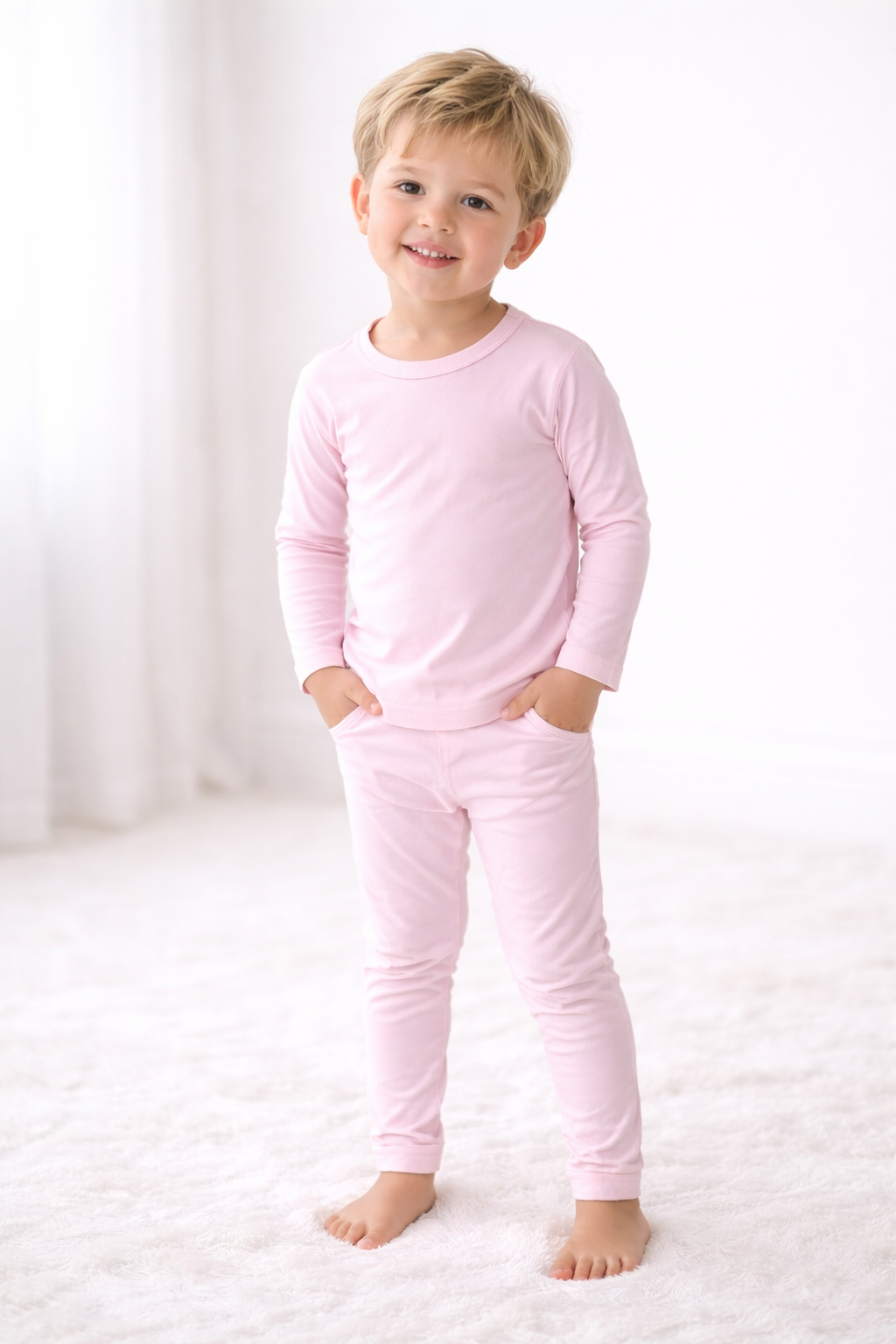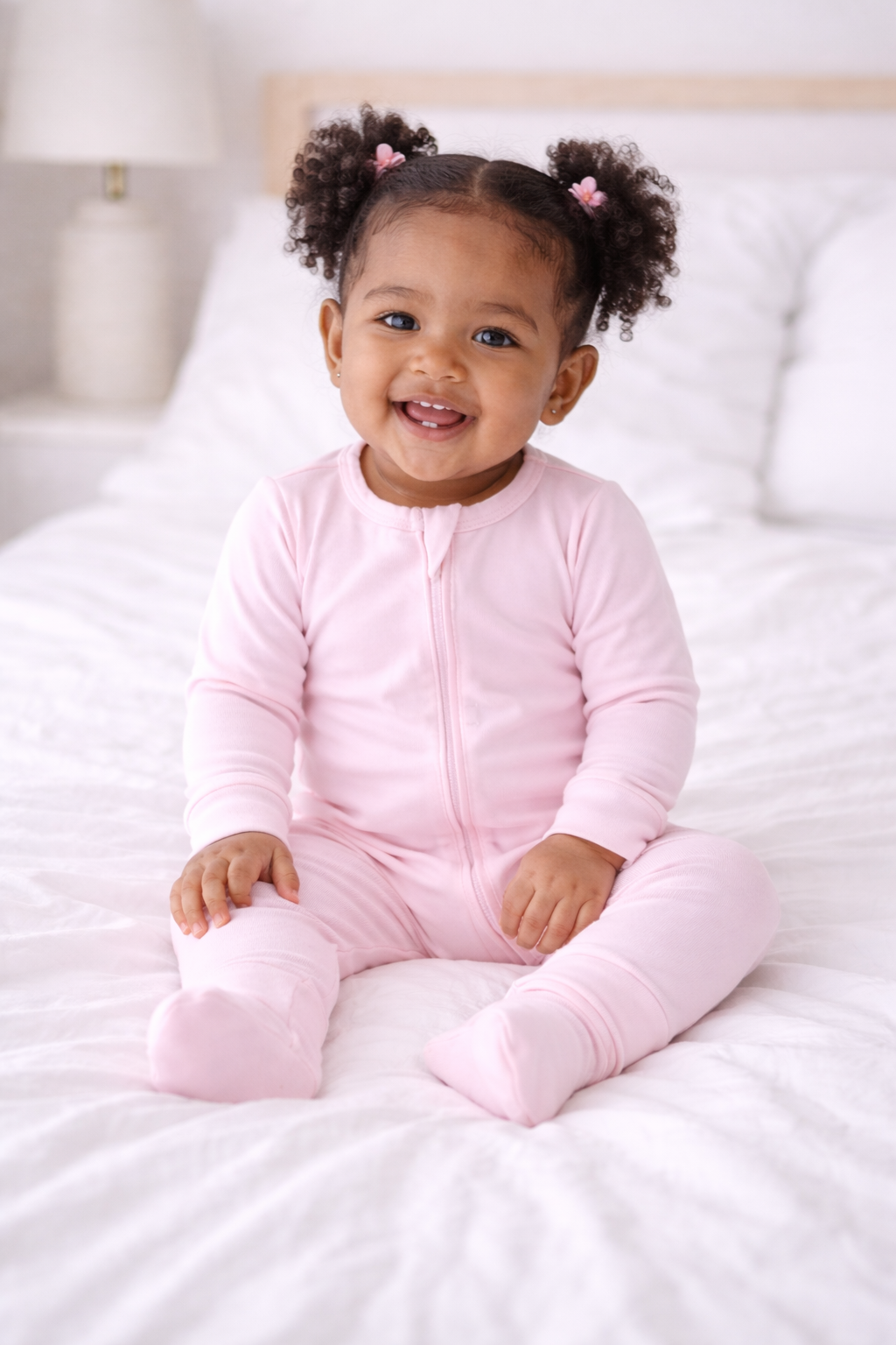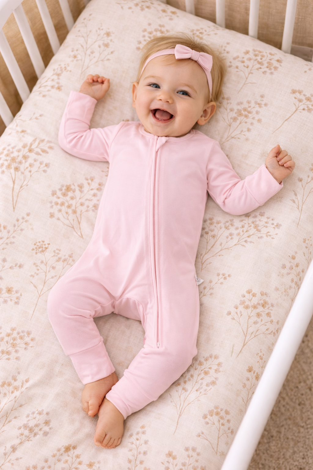 Made from 95% Viscose from Bamboo and 5% Spandex, our fabric is buttery-soft, breathable, and designed to stretch gently as your little one grows. Each piece is sustainably crafted for comfort that lasts — from playtime to sweet dreams.