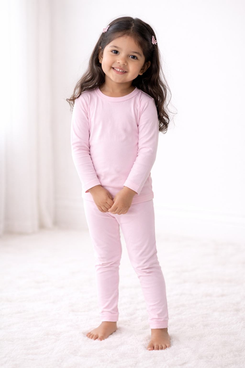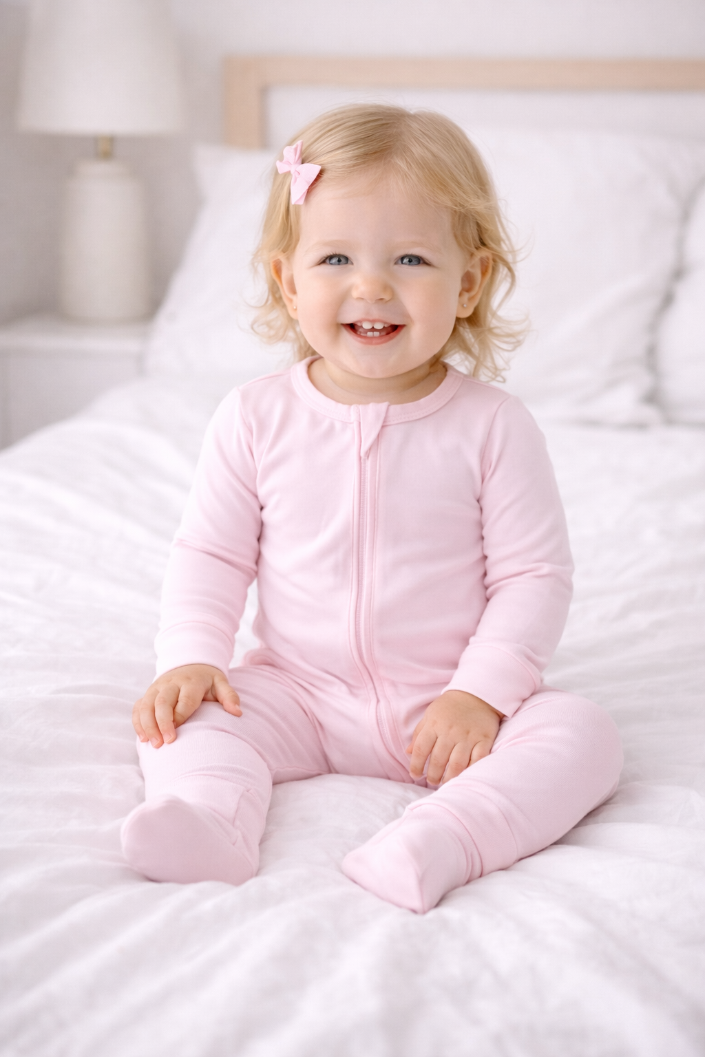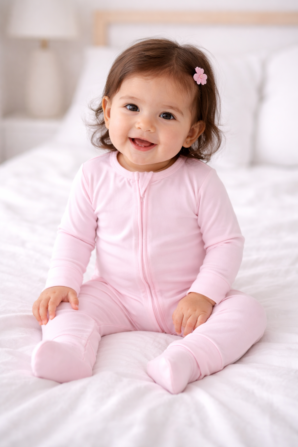 Made from 95% Viscose from Bamboo and 5% Spandex, our fabric is buttery-soft, breathable, and designed to stretch gently as your little one grows. Each piece is sustainably crafted for comfort that lasts — from playtime to sweet dreams.