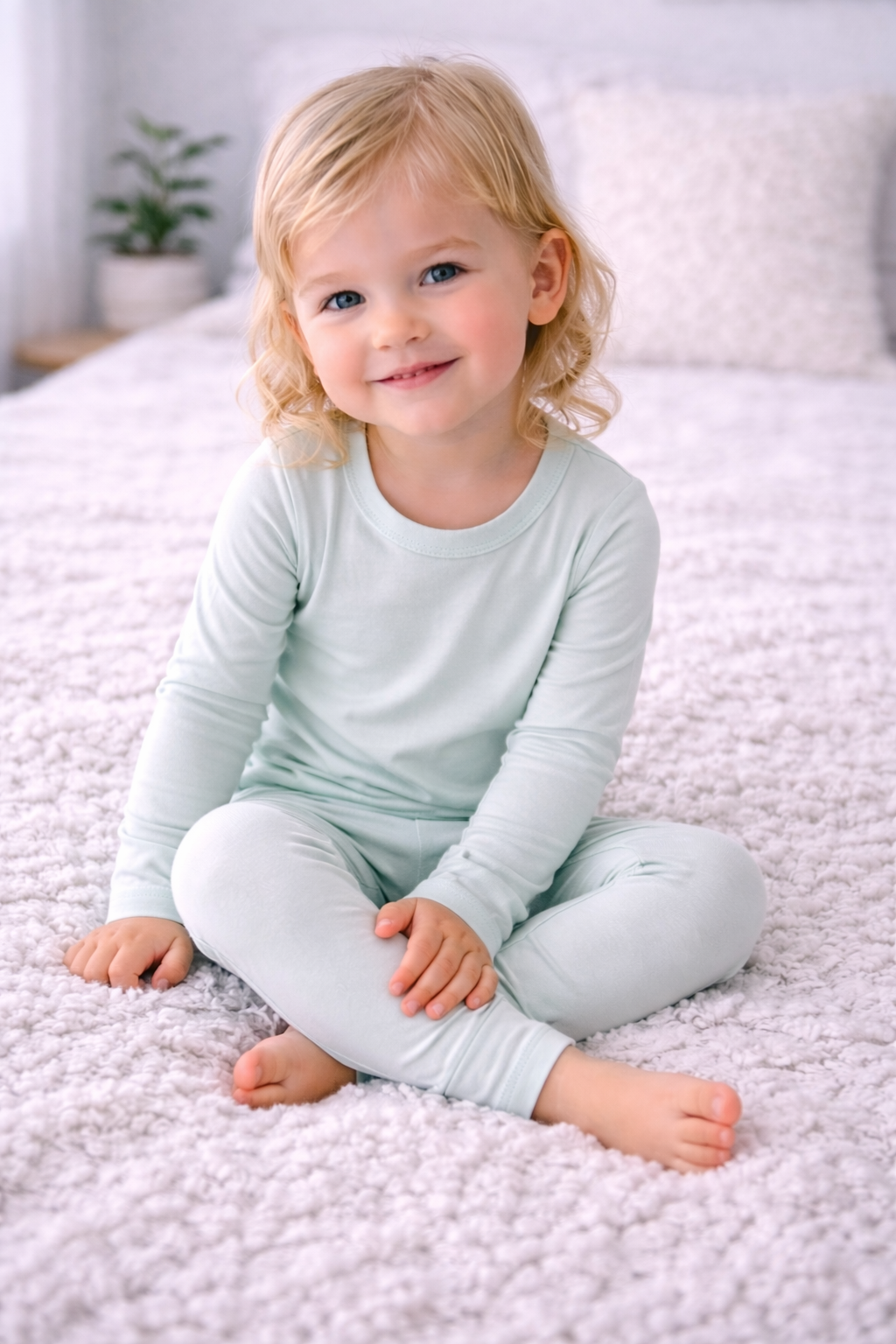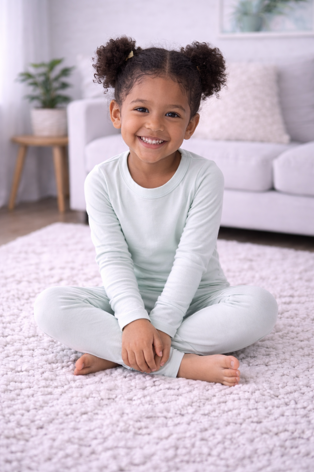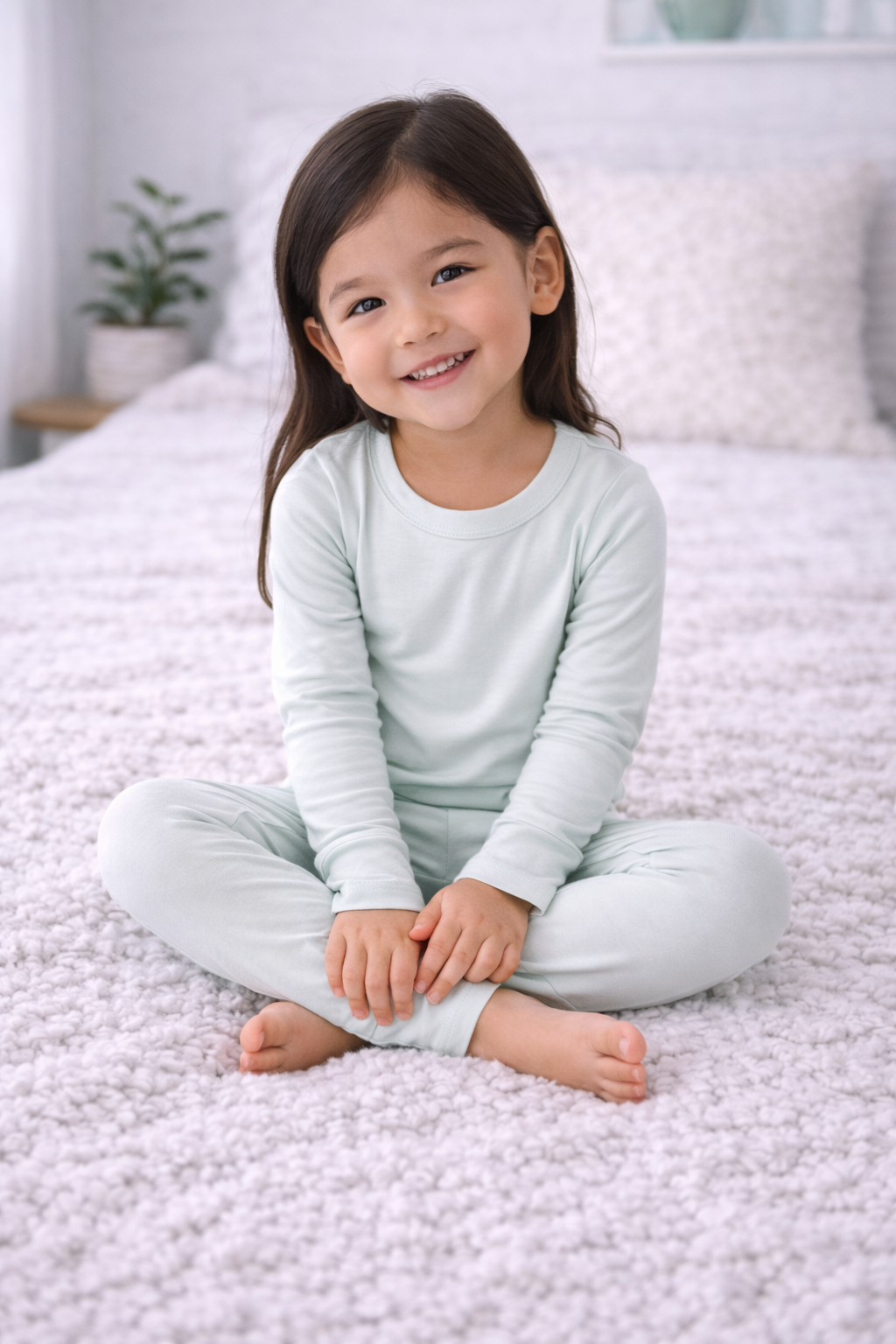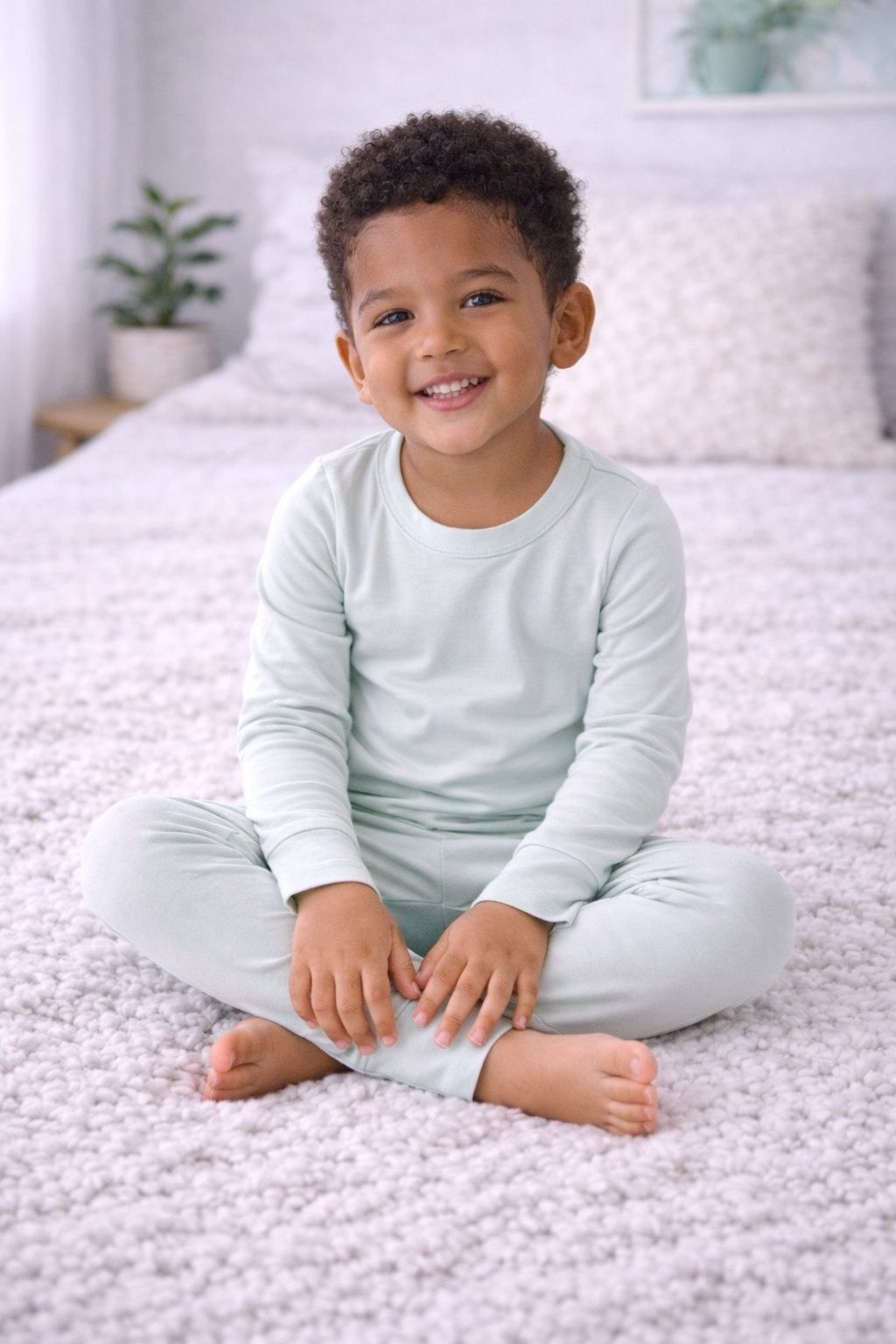 Made from 95% Viscose from Bamboo and 5% Spandex, our fabric is buttery-soft, breathable, and designed to stretch gently as your little one grows. Each piece is sustainably crafted for comfort that lasts — from playtime to sweet dreams.